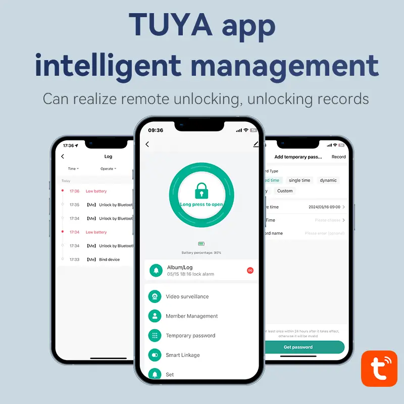 - Älykäs sovelluksen etälukituksen avaus: Napauta avataksesi lukituksen etänä erillisen sovelluksen kautta, jolloin vieraiden käyttö ja kodin hallinta on helppoa.