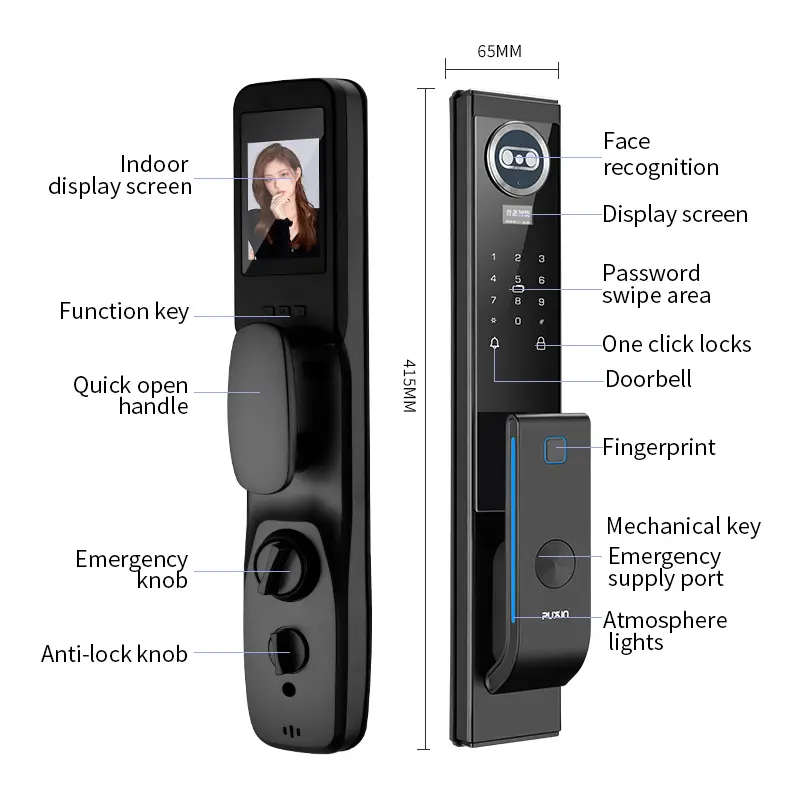 Sisätiloissa olevalla teräväpiirtonäytöllä varustetussa lukossa on erittäin vahva sinkkiseoksesta valmistettu runko (kiinnittymisen esto, ruosteenesto) ja pienitehoinen rakenne (12+ kuukauden akunkesto matalan tehon hälyttimellä). Sen yksinkertainen ja tyylikäs ulkonäkö sopii erilaisiin sisustustyyleihin.